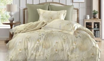 Выполнен из серой трикотажной ткани. Стежка на синтепоне создает дополнительный комфорт и уют. Для бурлетов используется износостойкая рогожка в цвет чехла матраса.