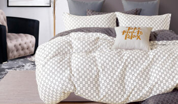 Выполнен из серой трикотажной ткани. Стежка на синтепоне создает дополнительный комфорт и уют. Для бурлетов используется износостойкая рогожка в цвет чехла матраса.